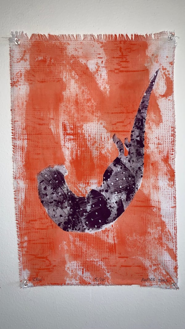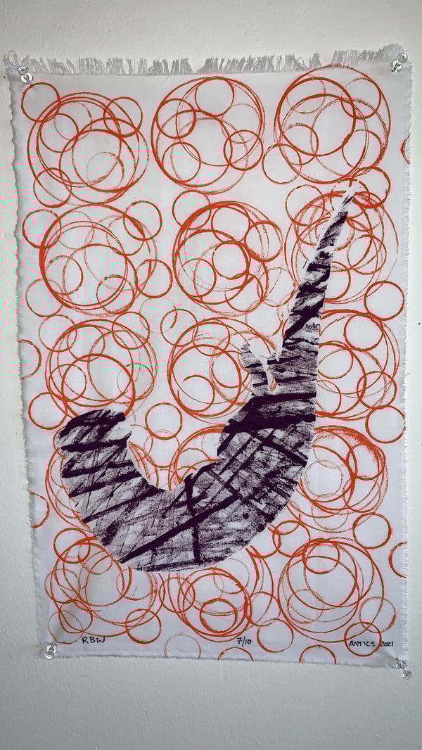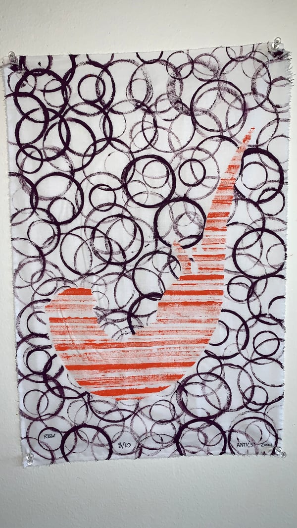 Limited edition of 10 hand-painted handkerchiefs on muslin fabric. Each piece is unique. Approximately 18” x 12”. Machine washable. Numbered and signed by the artist.